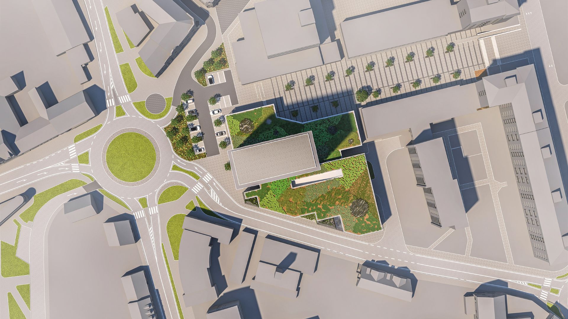 • Předokenní žaluzie na jižní straně budovy – lamely tmavě šedá, lamela ZZ 8cm, el. ovládání, osazené v předokenním podmítkovém purenitového boxu